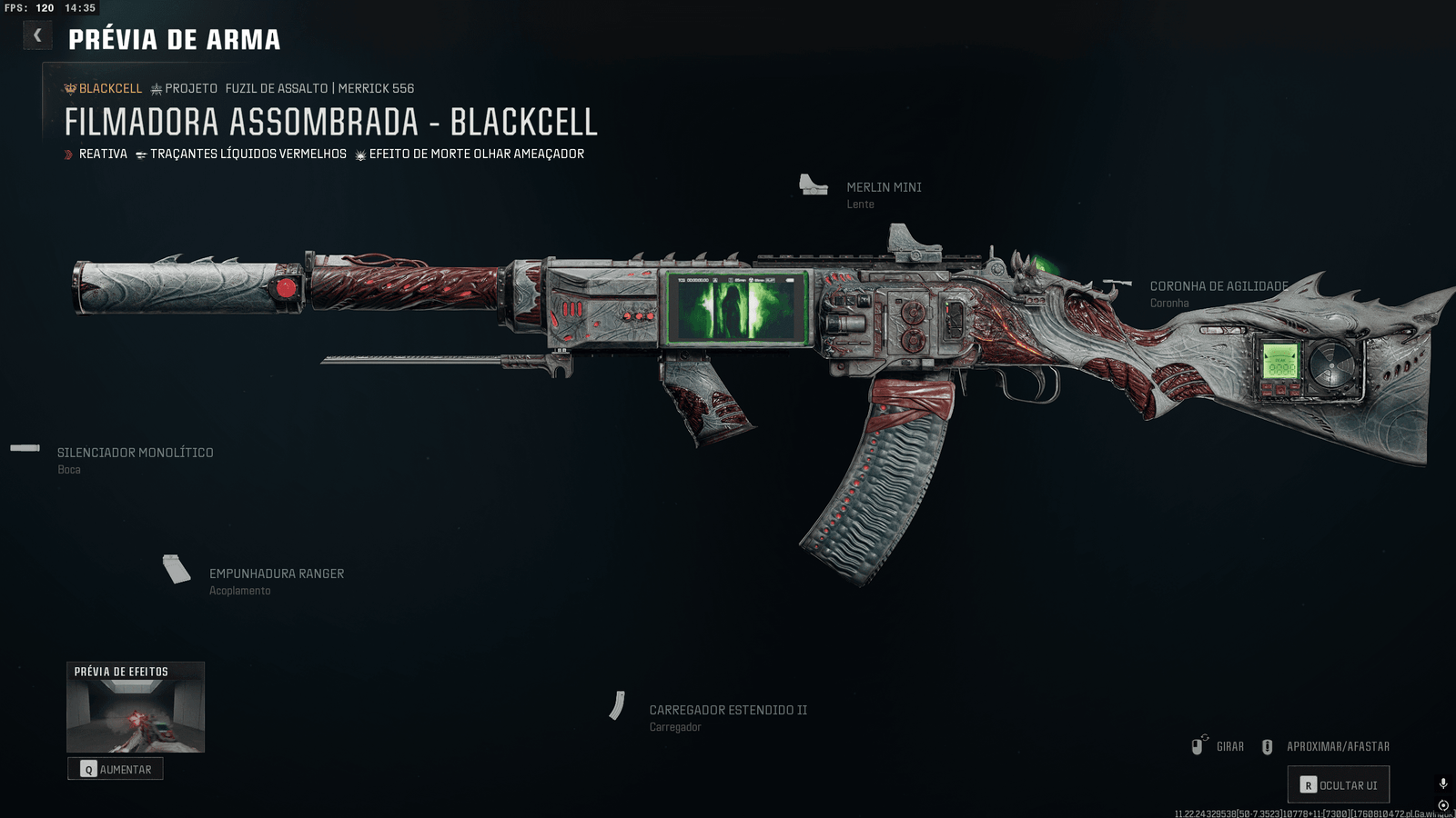 - Tela de arma (acessório cosmético com HUD in-game no armamento que conta as mortes / baixas)