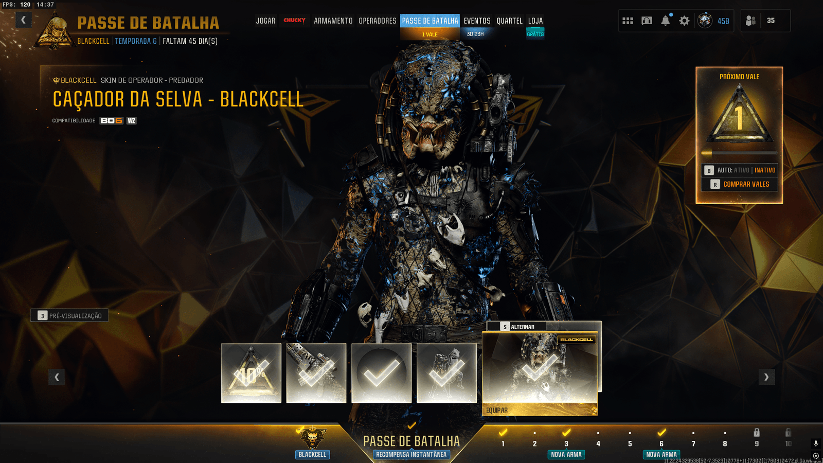 Bônus de fidelidade: ao comprar BlackCell novamente em temporadas seguintes, você recebe +10% de XP por temporada adquirida, acumulando até 50% no Black Ops 6.