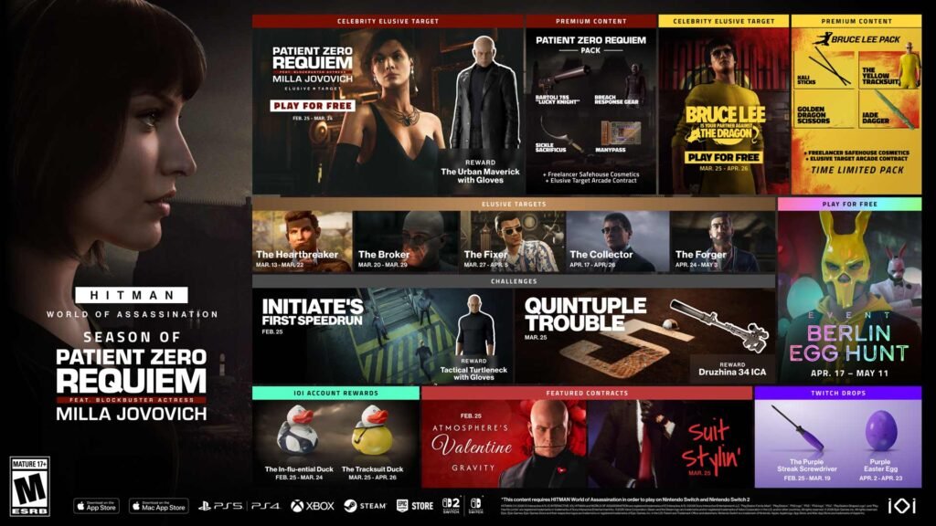 A IO Interactive anunciou o lançamento de uma nova missão de Alvo Elusivo para HITMAN World of Assassination. Intitulada The Harbinger, a missão é estrelada pela atriz Milla Jovovich e ficará disponível gratuitamente entre os dias 25 de fevereiro e 24 de março de 2026.