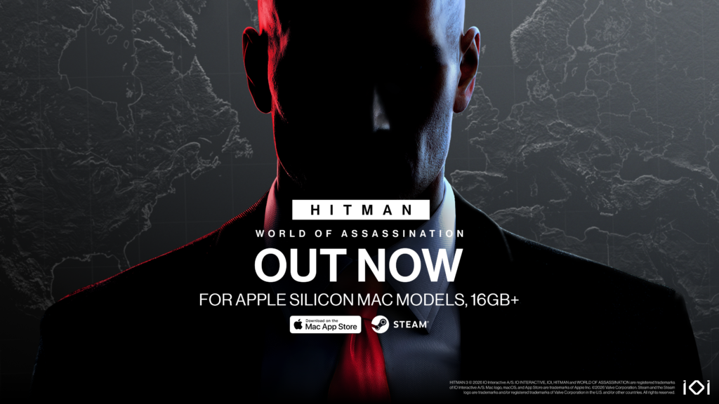 A partir de hoje, HITMAN World of Assassination também está disponível para a linha de Macs com processadores Apple Silicon (exigindo 16 GB ou mais de memória RAM). O jogo pode ser adquirido via Steam ou Mac App Store.