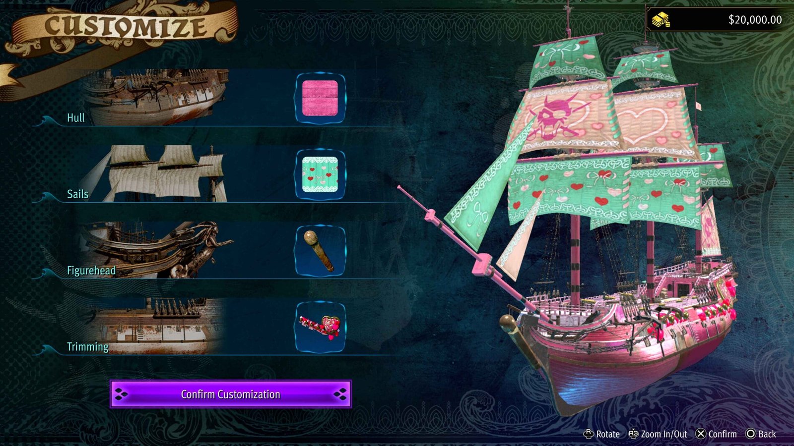 Seu navio é altamente personalizável, permitindo a troca de cores, bandeiras, equipamentos e armas livremente. No entanto, esta demo apresenta pouco combate naval, limitando a exploração desse aspecto. Ainda assim, é possível atacar com metralhadoras e canhões, abandonar o controle para explorar o navio, resgatar membros caídos da tripulação e usar um lança-mísseis. Além disso, você pode invadir navios inimigos de maneira semelhante a Black Flag: ao causar dano suficiente, torna-se possível assumir o controle da embarcação adversária.